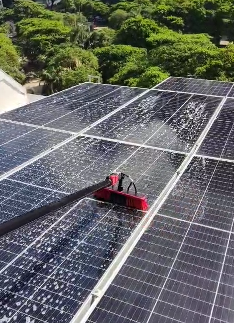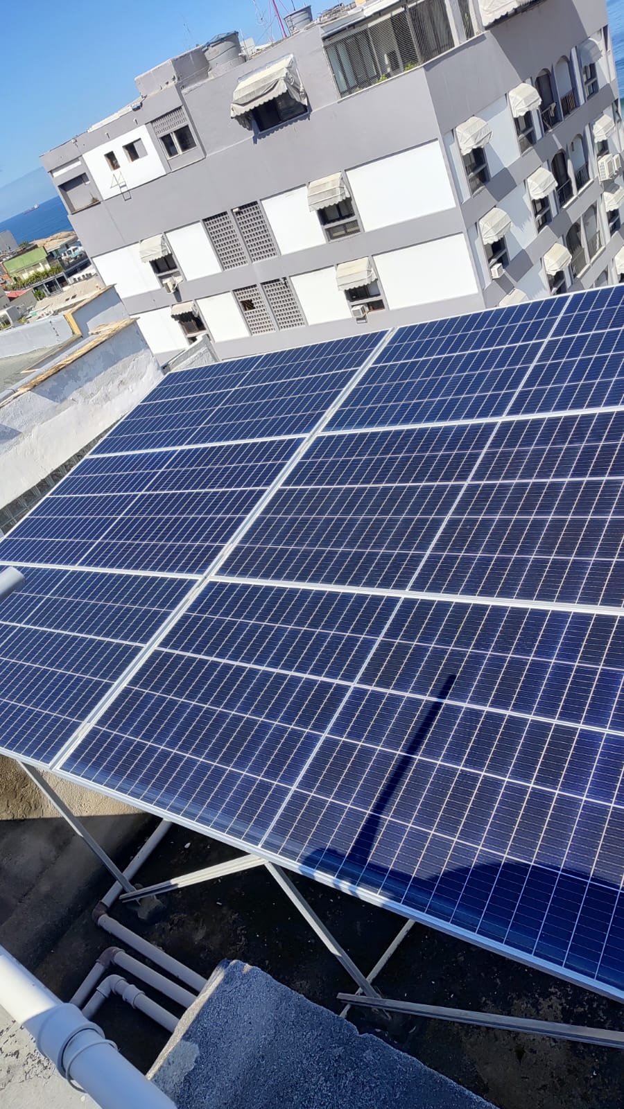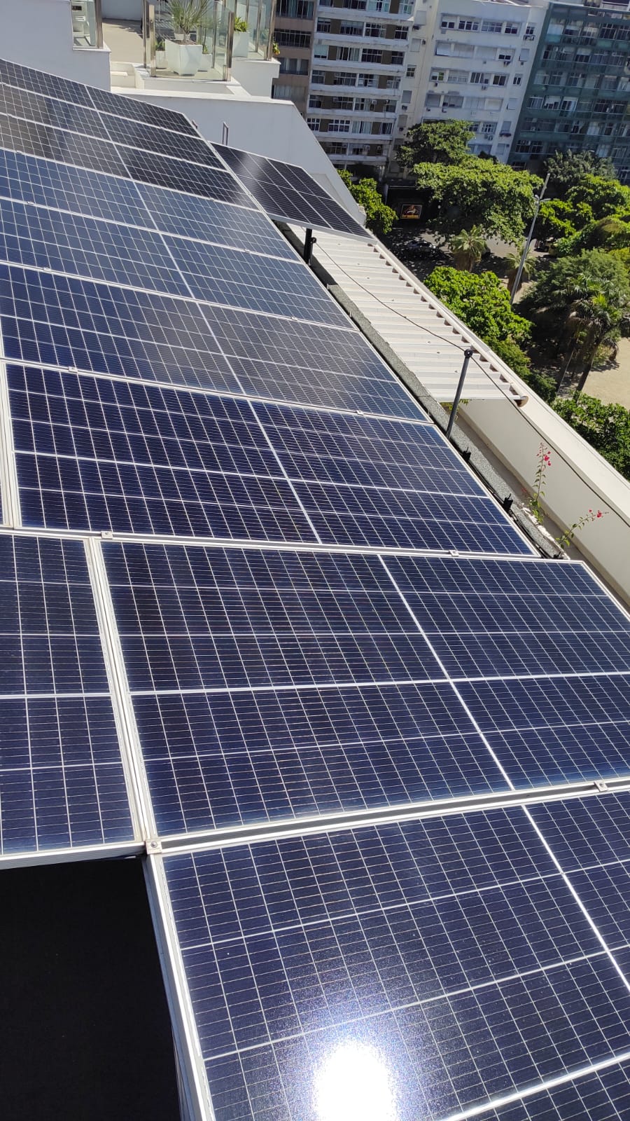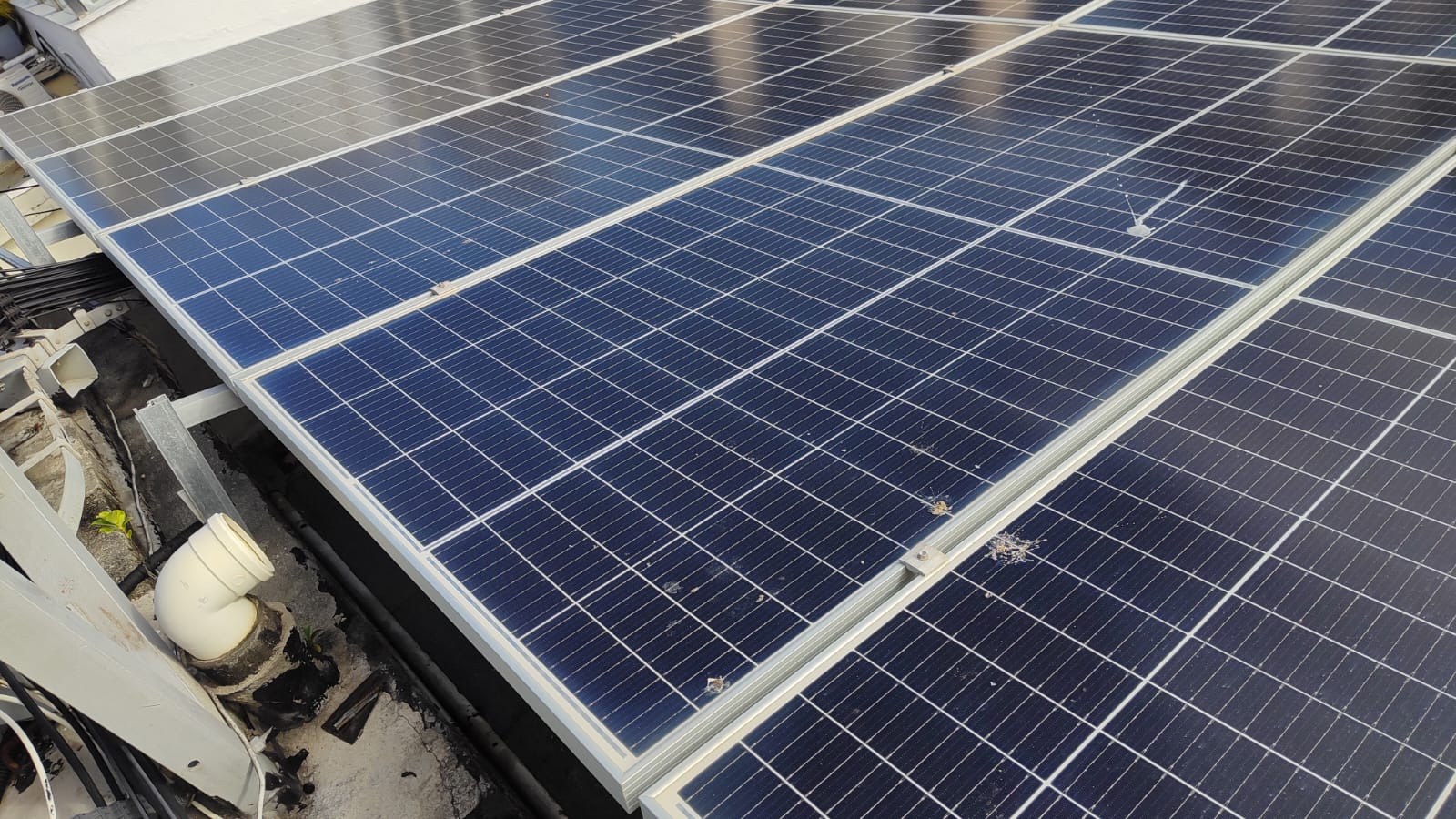 Nesta segunda feira, foi feita a revisão e manutenção dos painéis solares na cobertura de nosso prédio pela empresa Alvox engenharia, especializada neste tipo de serviço. A manutenção consistiu em limpeza das placas e revisão dos equipamentos, disjuntores, DPSs e fiação, além de análise térmica dos equipamentos.