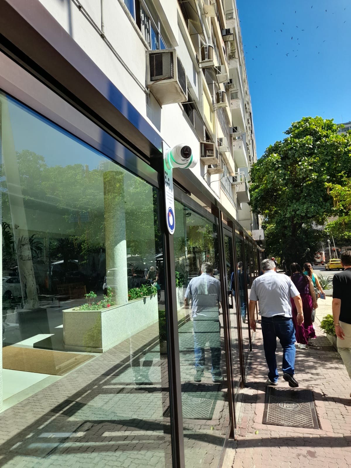 Nesta semana instalamos o sistema de monitoramento por câmeras da Gabriel. Essas câmeras monitoram o movimento da rua incluindo o registro das placas dos carros que passam na frente do prédio. Esse monitoramento é integrado com as polícias civil e militar.